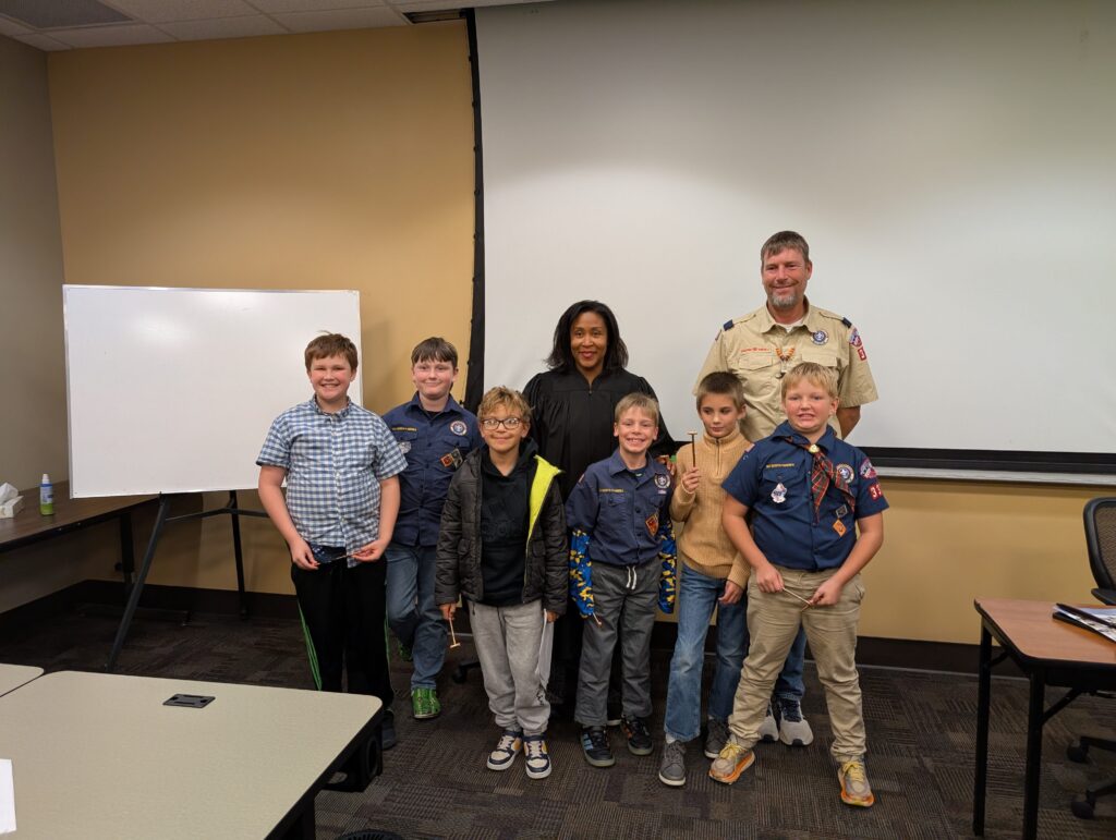 The Bear and Webelo Scouts took their citizenship lessons to the national level, focusing on what it means to be a citizen of the United States and how our government works. Bears expressed their patriotism through art, painting American symbols such as the U.S. flag and the Statue of Liberty. Meanwhile, the Webelos had a truly memorable experience: they met Honorable Judge Shayla Lewis, learned about the judicial system, and even participated in a mock trial. It was an incredible opportunity for them to see citizenship and justice in action.