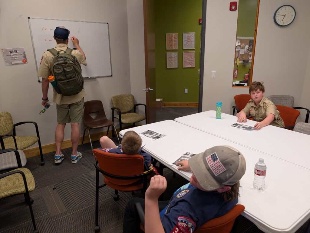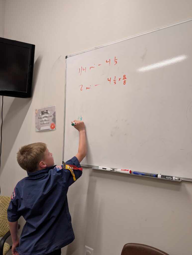 - Webelos Scouts worked on the Math on the Trail adventure, applying real-world math skills to outdoor scenarios. From measuring distance to estimating time and solving practical problems, they saw firsthand how math plays an important role in everyday adventures.